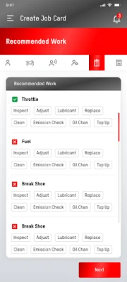 Job Card Creation: Easily open and track job cards, ensuring accurate and organized service records.