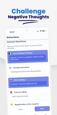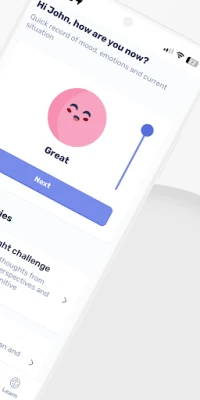 • A learning section with short lessons on CBT, app features, and usage tips.