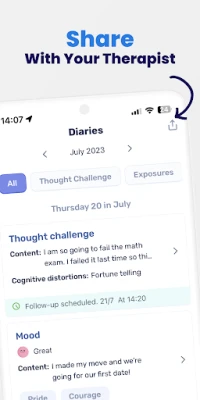 • Share all your content easily - you can attach your diaries and exercises in an email (convenient for therapists).