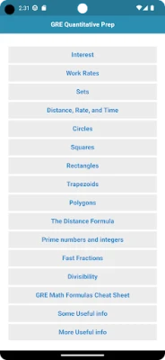 As you prepare for the Quantitative Reasoning measure of the GRE, this app will help you to take preparation anytime, anywhere. GRE Quantitative / GRE Math Preparation cover all essential topics. Studying for GRE quant is actually much more complicated than you think. You will able to learn most important GRE Quantitative topics from this app easily. Topics included in this app: