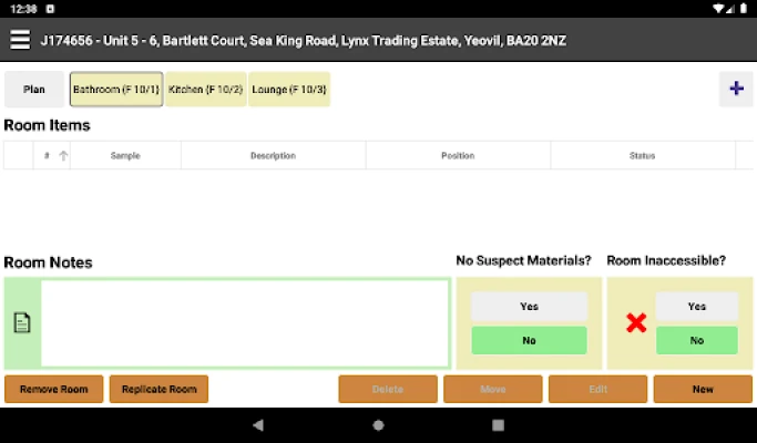 Within each room, ACMs can be created in a wide range of configurations to suite including sampled items (with material assessments and priority assessments), strongly presumed items, presumed/visual inspections and inaccessible items.
