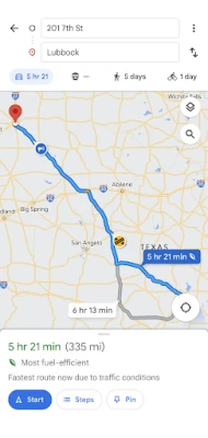 Locate the area you want to visit, press on the marker and you will be taken to a close up map of the city or area. Points of interest and local businesses are highlighted. Press on a point of interest and a panoramic view appears. Select Directions from the option menu, and the app will give you driving directions from you current location to the destination.