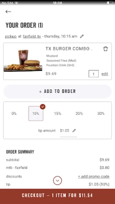 • ORDER AHEAD: Place orders online to skip the line and get TX Burger brought to your car with Curbside pickup or Delivery.